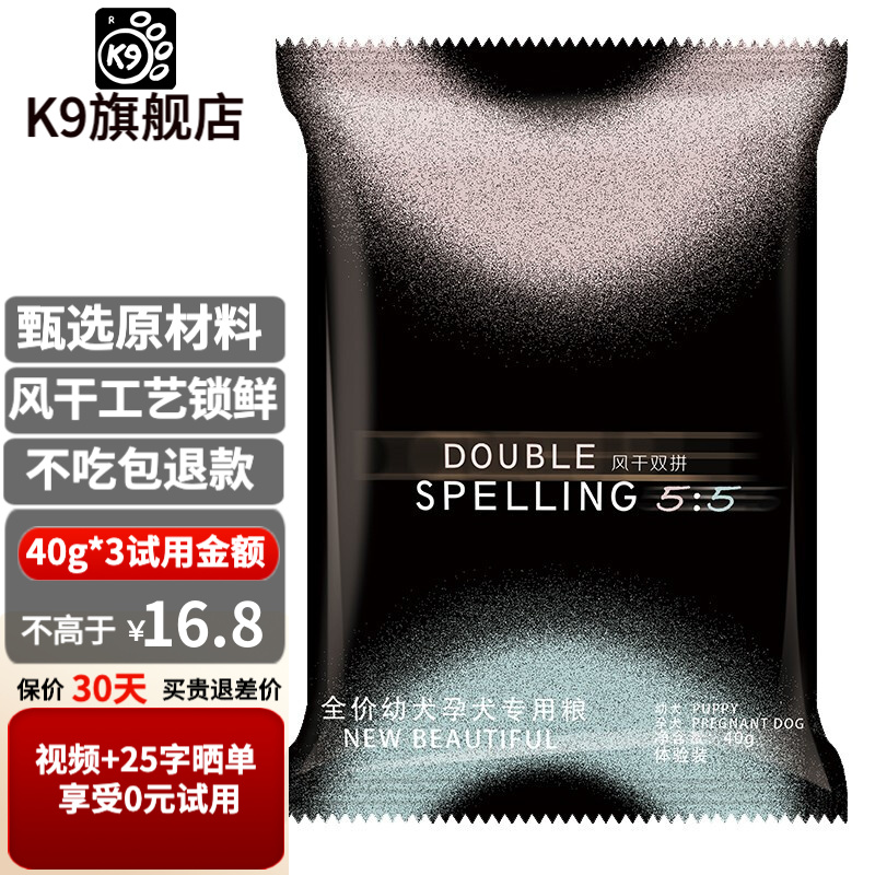 K9新秀美风干双拼泰迪贵宾狗粮 宠物成犬幼犬主粮 风干粮 口臭全犬种通用狗粮 幼犬旅行装(40g*3)