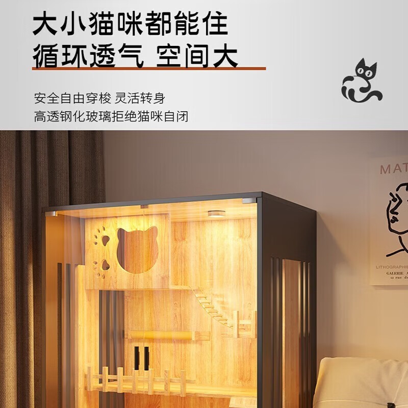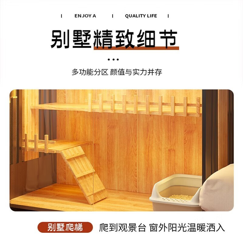 蒂乐森猫别墅实木猫笼子猫舍家用猫窝展示柜两层猫咪繁育笼超大猫屋 W2防水款60*60*90CM 自己安装 送货上门