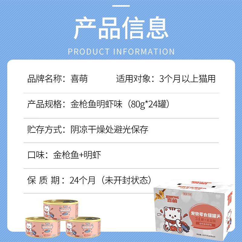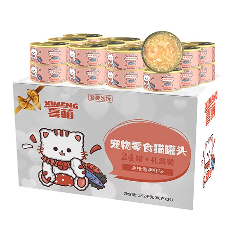 喜萌 猫罐头80g*24罐 金罐礼盒装成猫幼猫湿粮猫零食 三文鱼 明虾白肉浓汁汤罐