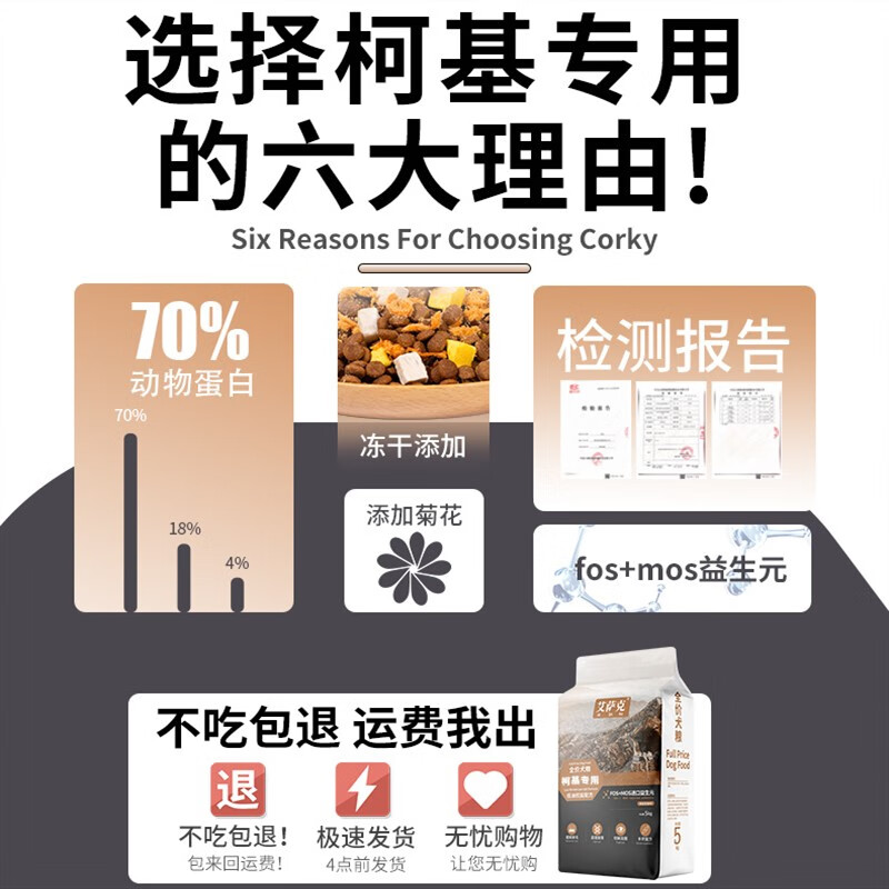 柯基专用狗粮丰臀增肥10斤装冻干犬粮幼犬成犬补钙小型犬20 5kg 10斤装 柯基专用(肉松 冻干 蛋黄四拼) 狗狗营养膏1支