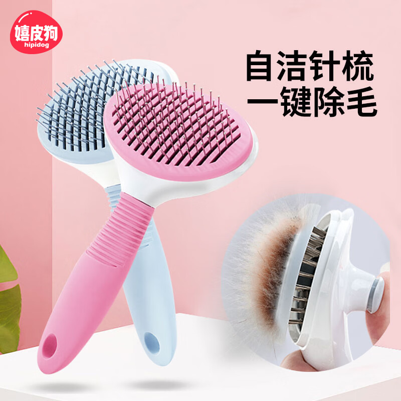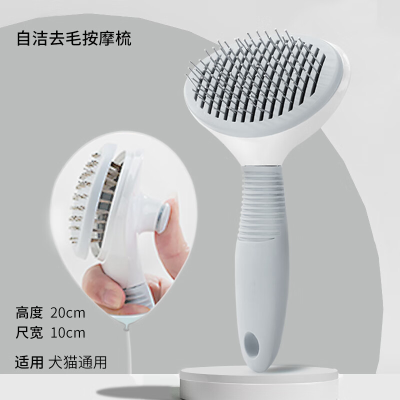 嬉皮狗猫毛梳子宠物刷神器猫毛清理器撸猫咪去浮毛用品泰迪狗狗专用针梳 自洁梳毛灰色_去毛按摩梳