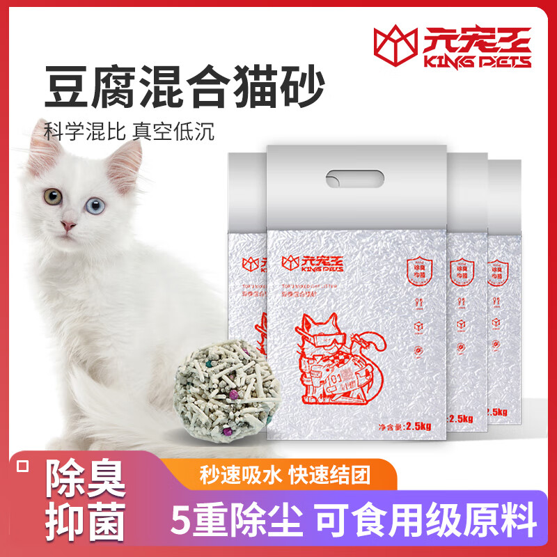 元宠王豆腐猫砂奶香型无粉尘防臭膨润土除味易结团可冲马桶厕所2.5公斤 4袋/10kg/20斤可冲厕所防臭 混合型豆腐猫砂