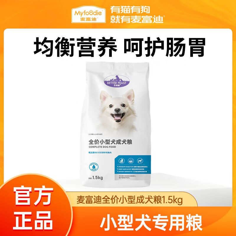 麦富迪(Myfoodie)麦富迪狗粮贝特鲱系列犬粮全价小中大型犬成犬粮通用泰迪金毛贵宾 小型犬成犬粮1.5kg