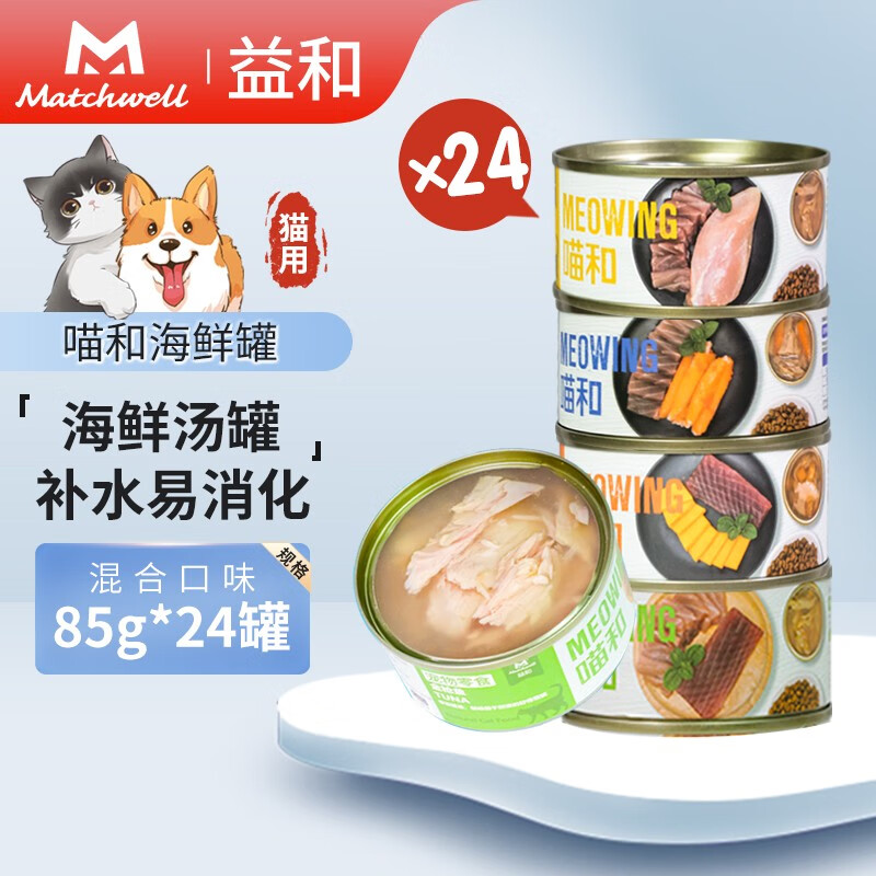 益和(MATCHWELL)益和猫罐头喵和零食汤罐营养猫粮拌饭猫咪宠物主食增肥发腮猫湿粮 【整箱24罐】喵和罐头混合口味