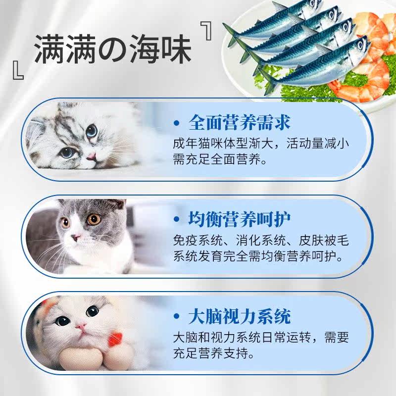 喜跃猫粮成猫海鲜味猫食成猫粮 三文鱼味英短美短布偶猫1.3kg*2包