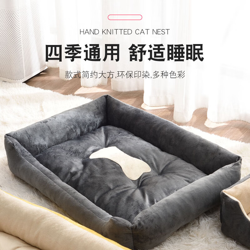 凛东狗窝四季通用冬天保暖泰迪小型大型犬猫窝冬季宠物垫子狗狗用品床 浅灰色 布骨头 A50*40cm建议5斤内