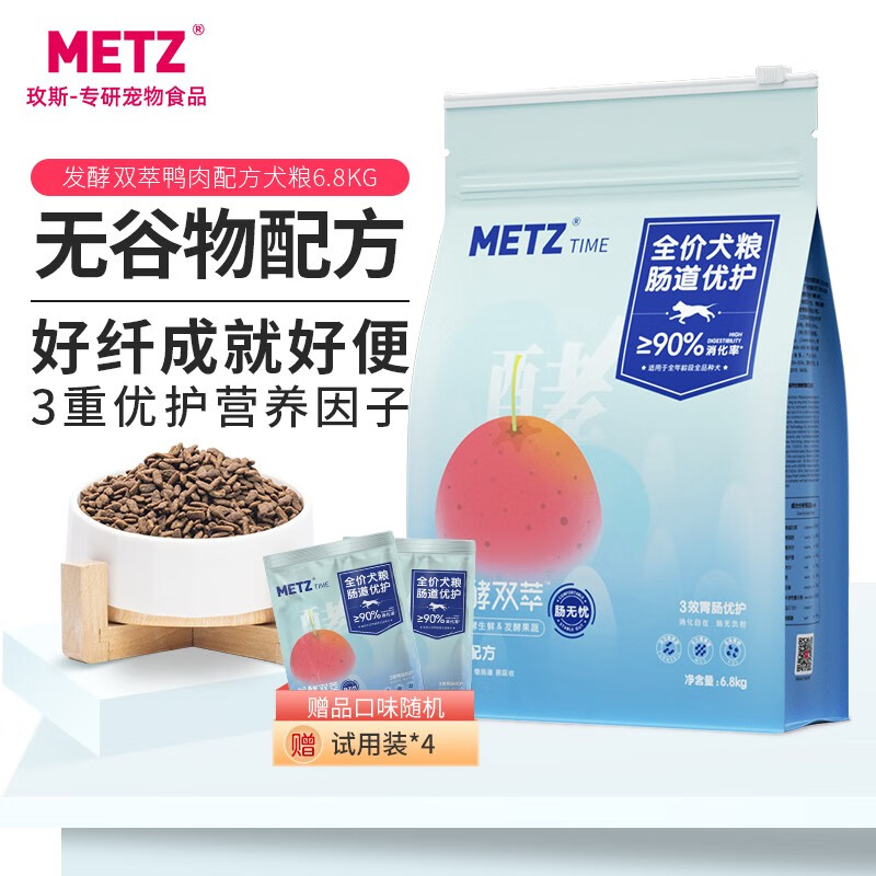 玫斯(metz)发酵双萃肠道优护全价通用狗粮小中大型犬粮成犬幼犬泰迪比熊 鸭肉味6.8kg