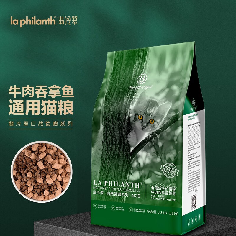 翡冷翠(LA PHILANTH)N26 5.45Kg 自然馈赠系列牛肉吞拿鱼蔓越莓配方猫粮 冻干生骨肉添加猫粮通用型