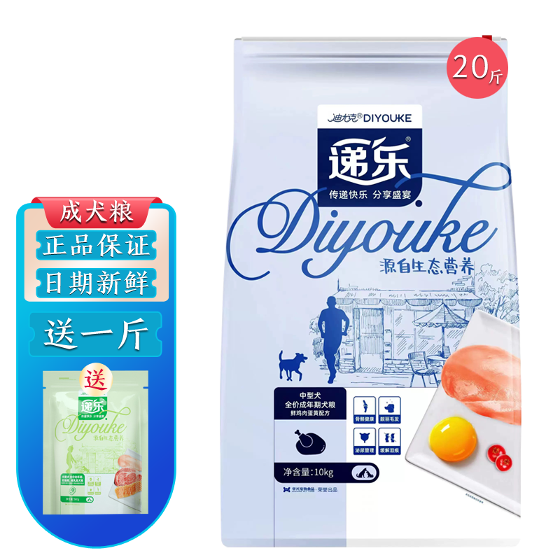 递乐狗粮泰迪阿拉斯加比熊金毛萨摩耶哈士奇通用型 成犬狗粮10kg20斤