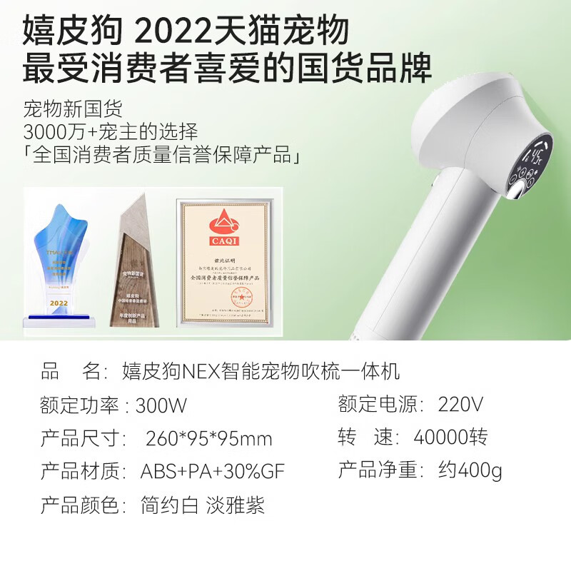 嬉皮狗(hipidog)宠物吹风机拉毛一体机狗狗吹毛神器猫梳毛泰迪比熊洗澡小型犬专用 【简约白】NEX智能吹梳一体机 无规格