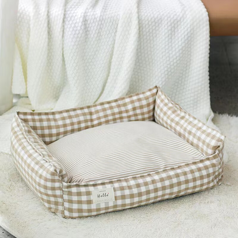 ABDT狗窝可拆洗四季通用小型犬夏季泰迪睡觉狗床房围栏狗笼子垫子猫窝 杏色 S-小型---适合10斤内