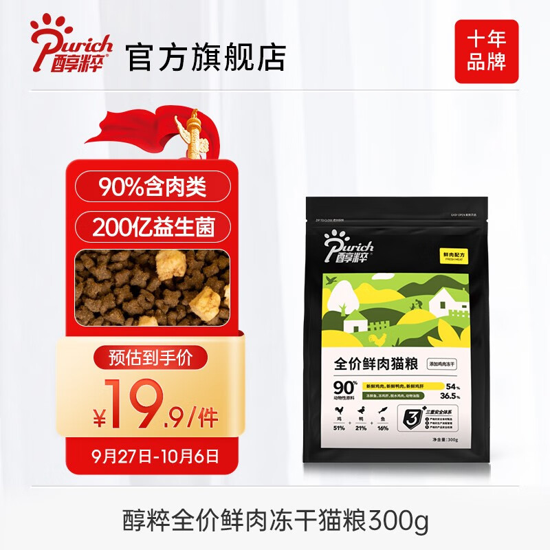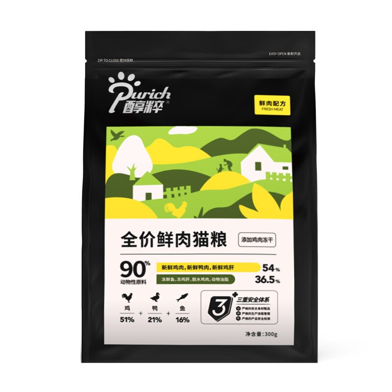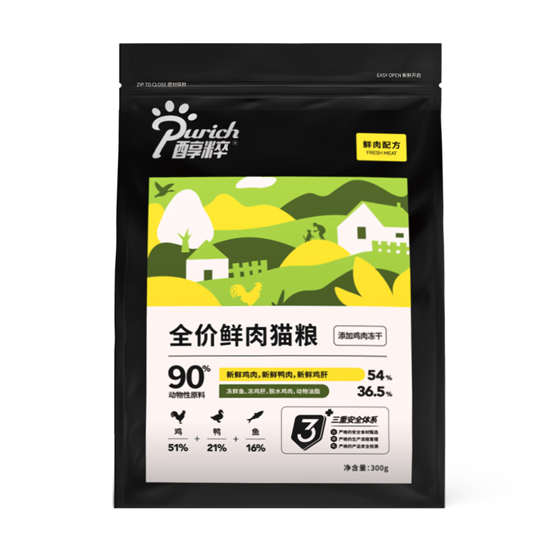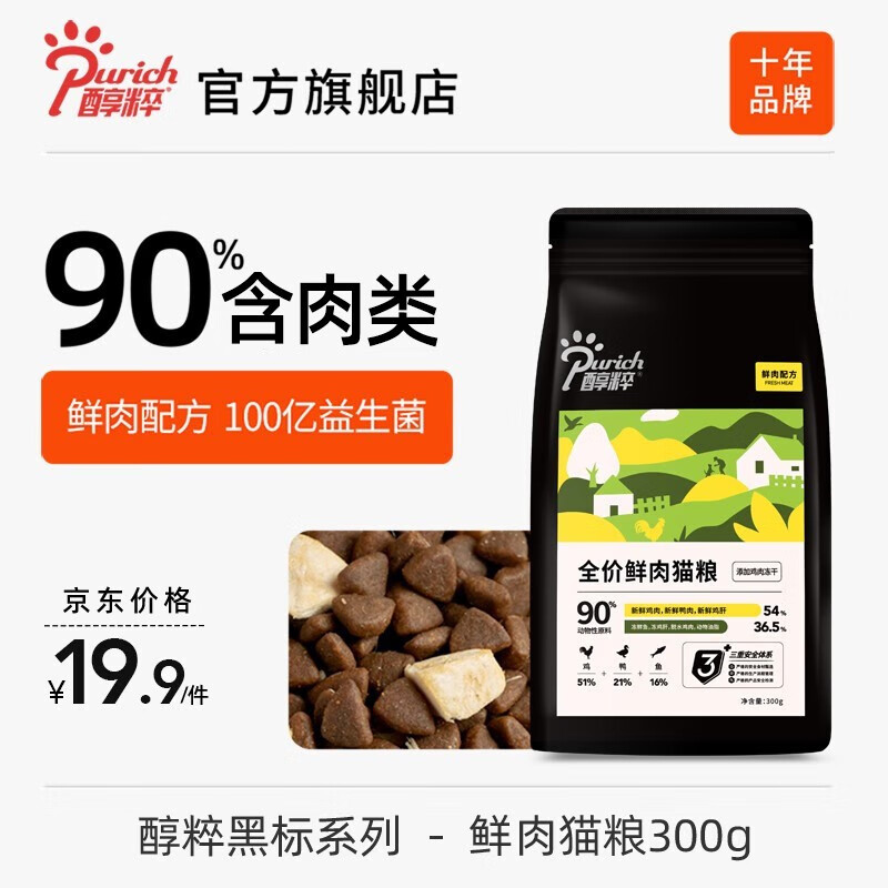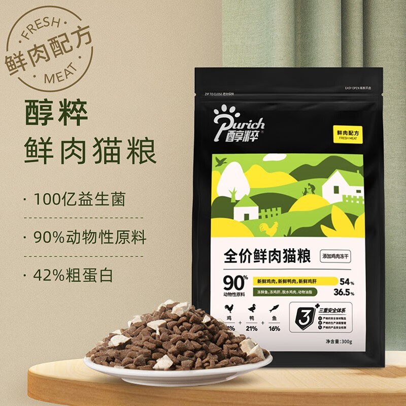 醇粹鲜肉猫粮黑标 全价添加益生菌高肉幼猫成猫纯粹全价冻干猫粮 鲜肉猫粮300g
