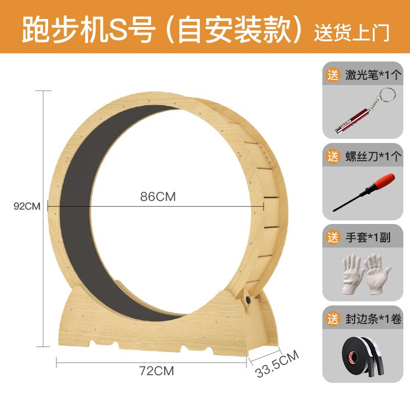猫咪跑步机猫滚轮低音自安装猫爬架小中大型宠物运动锻炼玩耍玩具 S码-家具板【建议6斤内】 微缝隙防夹脚