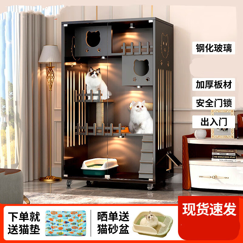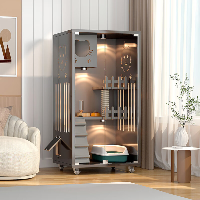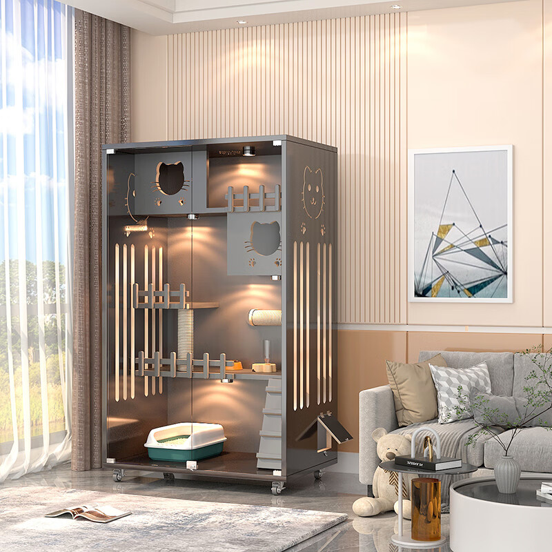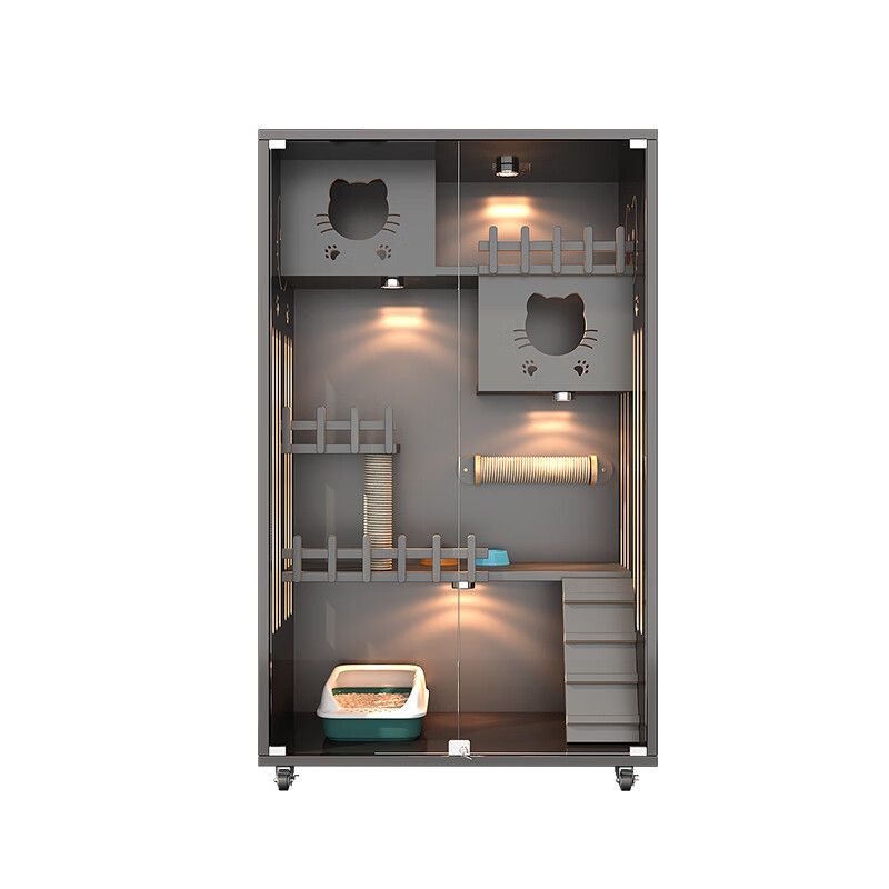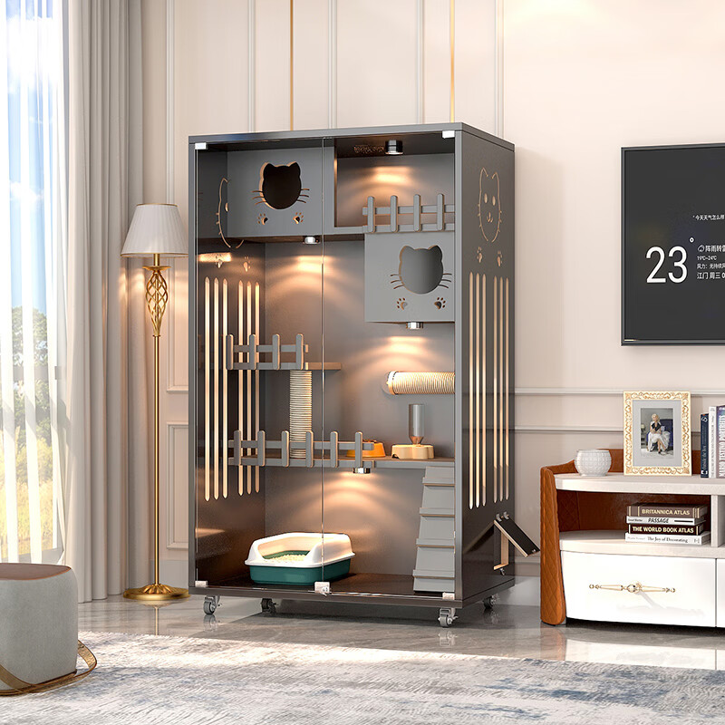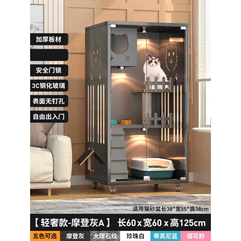 小米城堡 猫别墅 木质家用猫柜子猫笼猫窝猫笼子猫舍猫屋大猫咪房子 轻奢款摩登灰A【60x60x125】 公 配货到家--自行安装