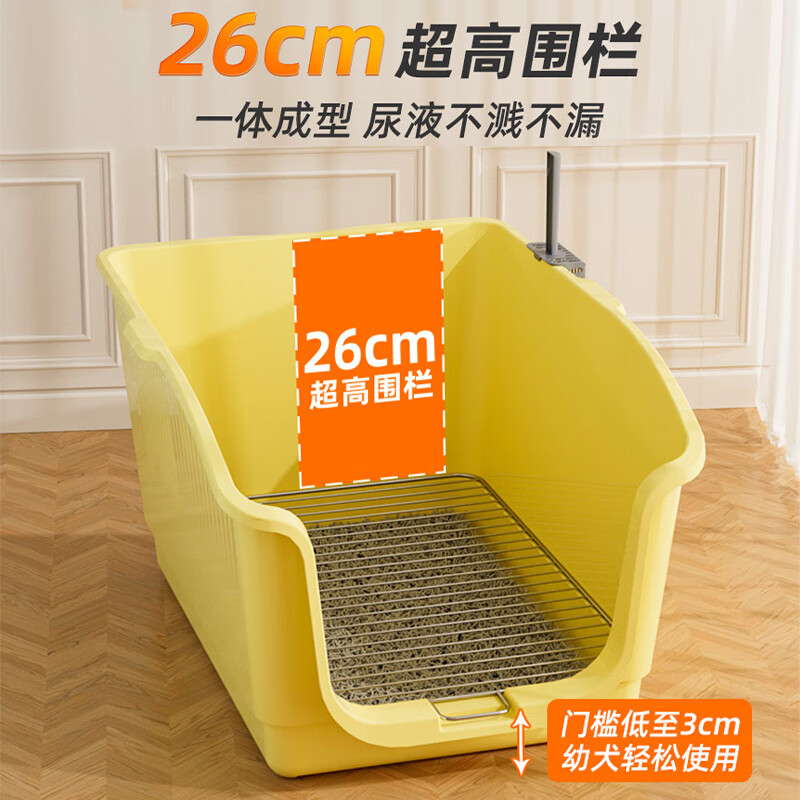 华元宠具(hoopet)狗狗厕所宠物专用便便盆不锈钢防踩屎狗砂盆尿尿大型犬大小便神器 【高围栏】15mm(适合3-6斤)