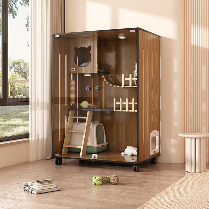 小米城堡猫别墅猫笼子猫舍家用室内猫屋猫柜猫咪房子超大自由空间豪华猫窝 120*60*60枫木色(款) 配货上门-自行安装