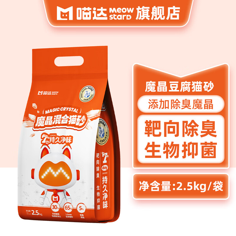 喵达(Meowstard)混合猫砂除臭粉混合豆腐猫砂魔晶系列可冲厕猫沙整箱装2.5kg/袋