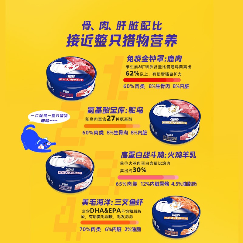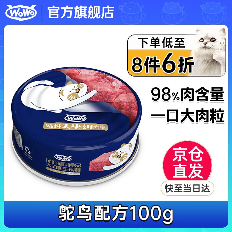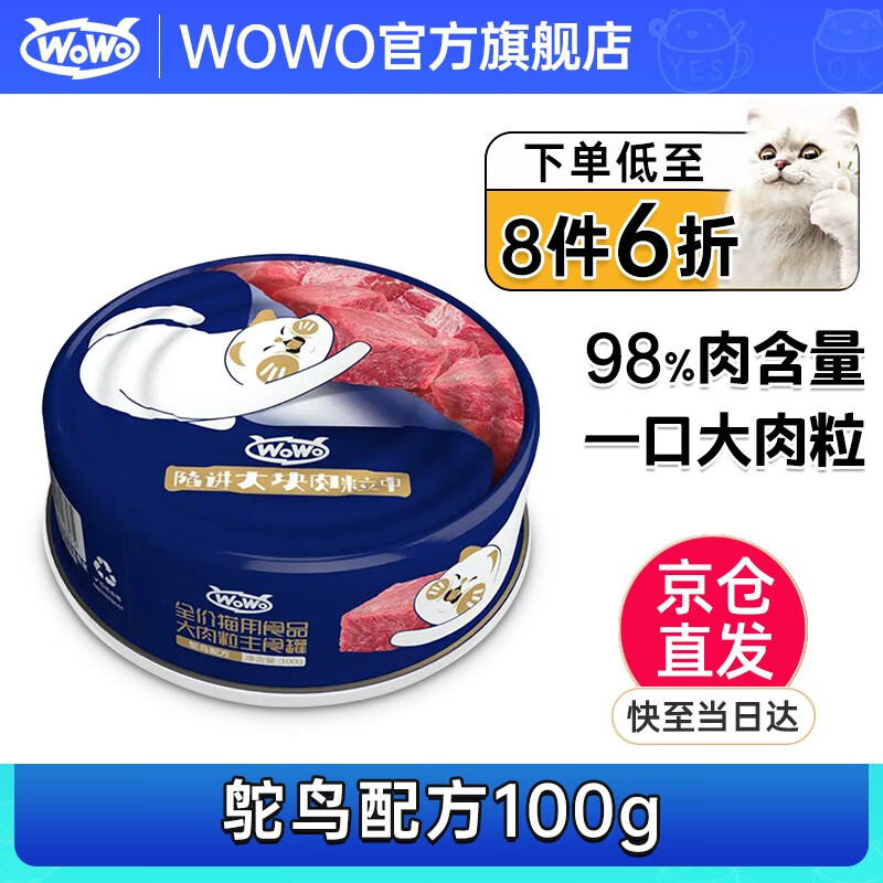WoWo喔喔 猫生骨肉主食罐头猫咪罐头全价成猫幼猫罐头增肥发腮湿粮 大肉粒主食罐-鸵鸟(100g)