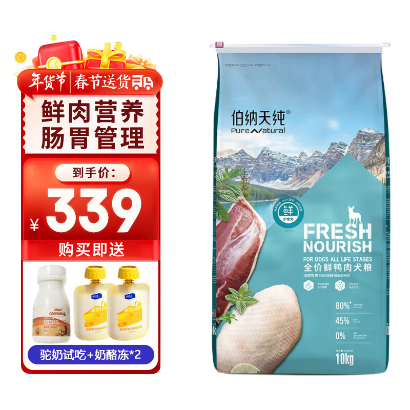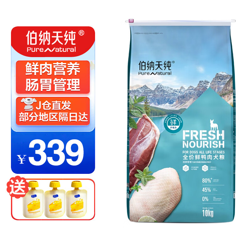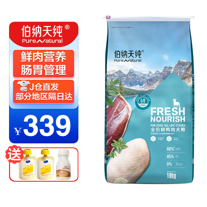 伯纳天纯 鲜护食力系列 宠物狗粮 0谷物成犬幼犬中大型小型犬通用狗粮 鸭肉味 10kg