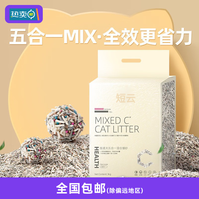 【精选推荐】短云宠道夫混合猫砂除臭活性炭奶香 奶油香味【纯豆腐】猫砂2.5kg
