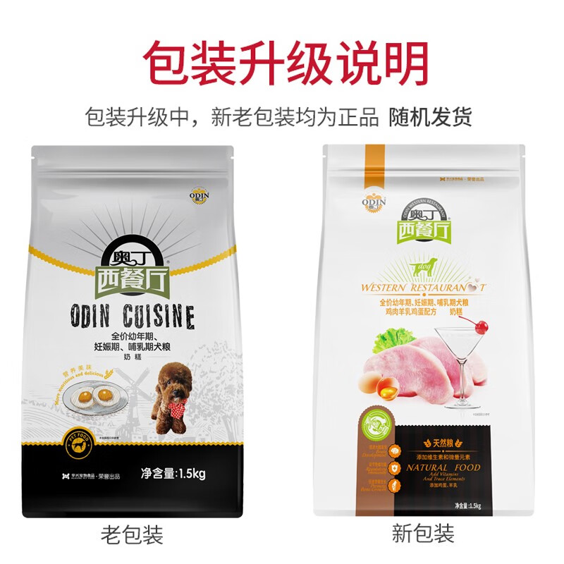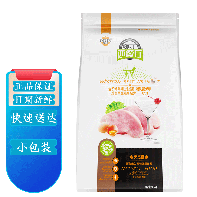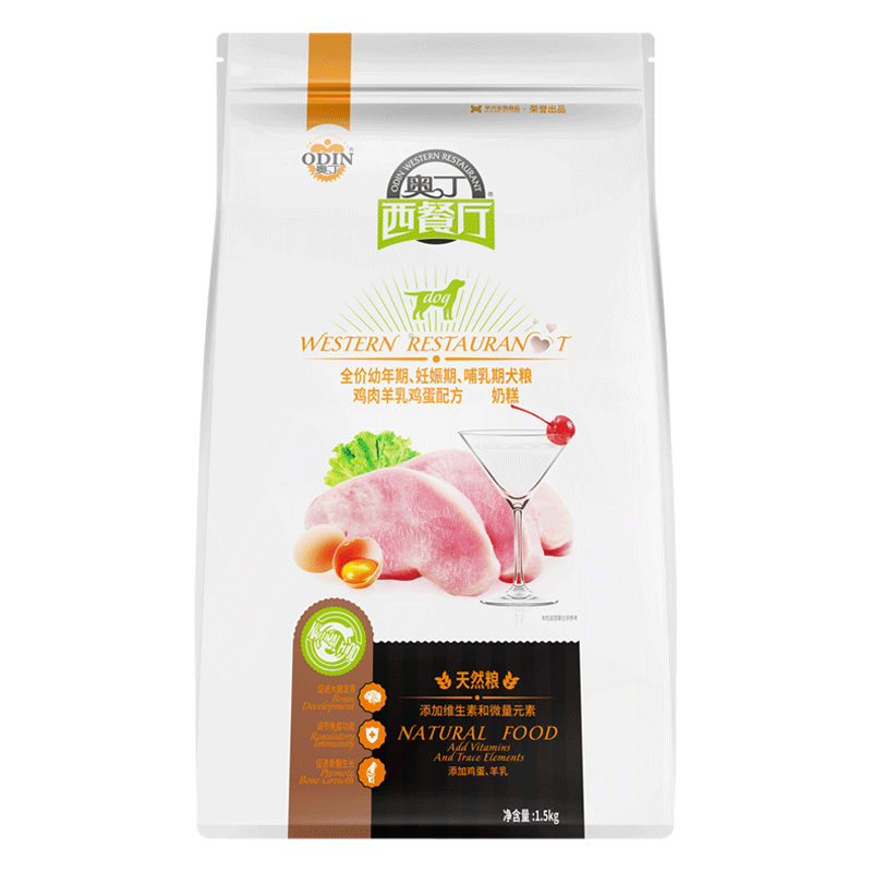 奥丁西餐厅狗粮泰迪阿拉斯加比熊巴哥英牛金毛贵宾博美萨摩耶通用型 幼犬奶糕狗粮1.5kg3斤