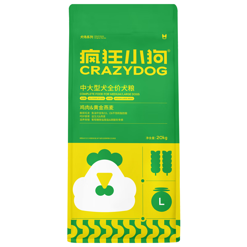 疯狂小狗 狗粮小型犬10kg泰迪比熊博美鸡肉蓝莓成犬大型犬通用型20斤 鸡肉燕麦20kg