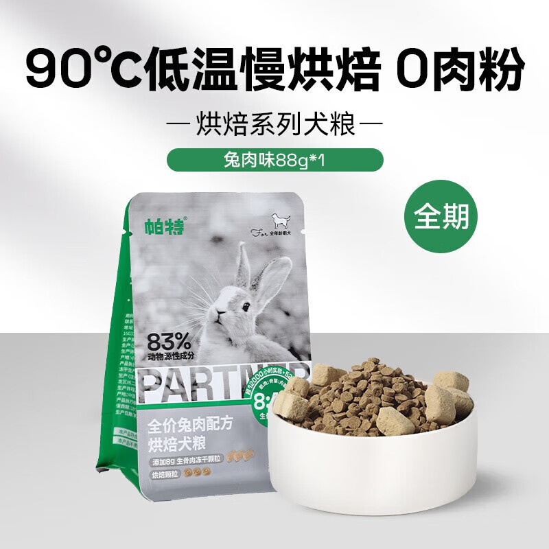 帕特低温烘焙犬粮无谷全价幼犬成犬粮全期狗粮美毛护肤 0肉粉0诱食剂 烘焙系列犬粮|试用装