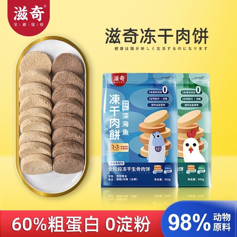 滋奇(Ziiky)滋奇主食冻干肉饼 猫咪生骨肉冻干幼猫猫粮可做零食补充营养 【正装】深海鱼味450g