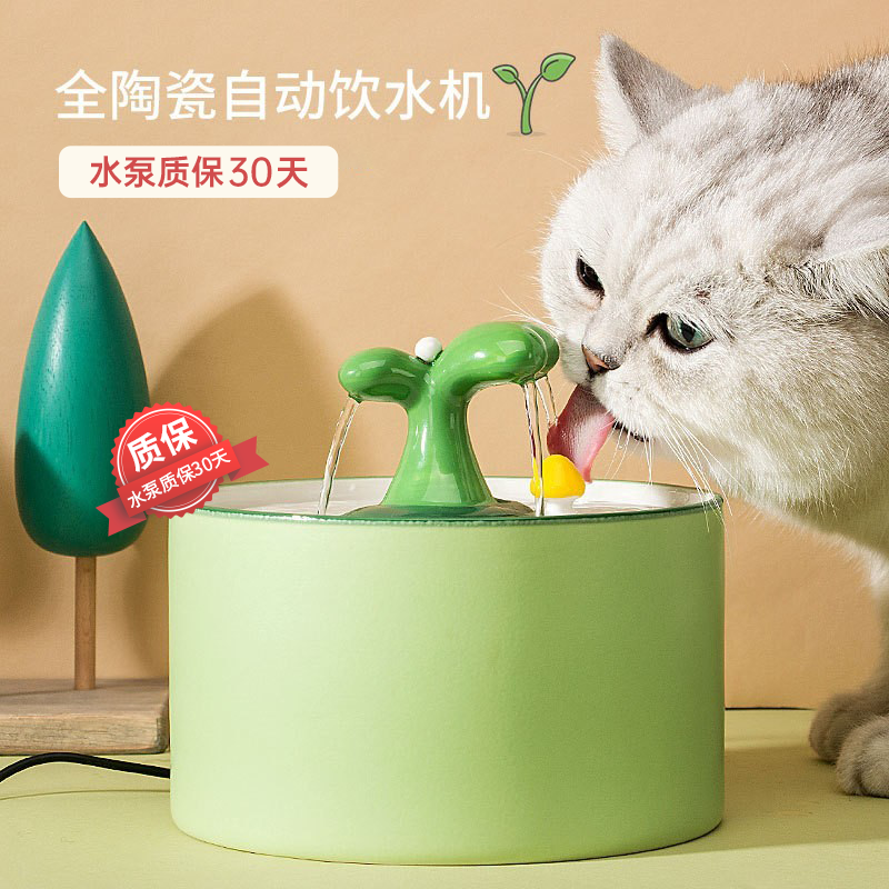 TOM CAT猫咪饮水机宠物饮水器自动循环陶瓷猫喝水智能感应无线饮水机 陶瓷小树苗【小号1000ml】