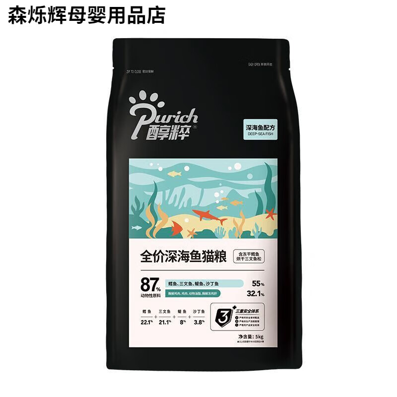 醇粹(Purich)黑标猫粮5kg深海鱼三文鱼鳕鱼冻干无谷高肉成猫幼猫粮纯粹 87%动物性原料 冻干猫粮5KG