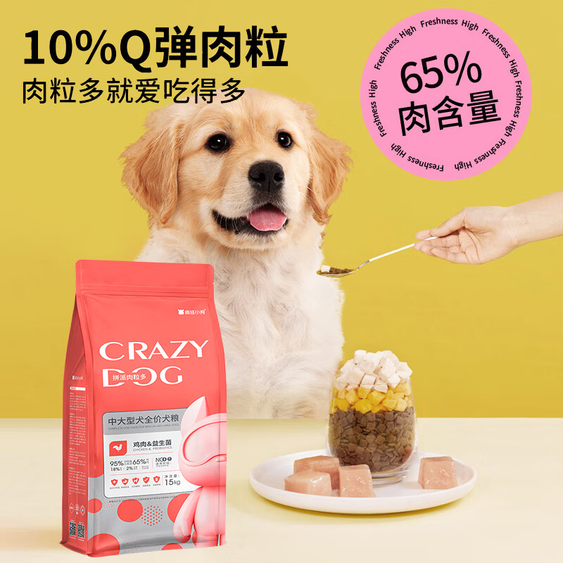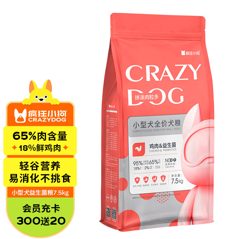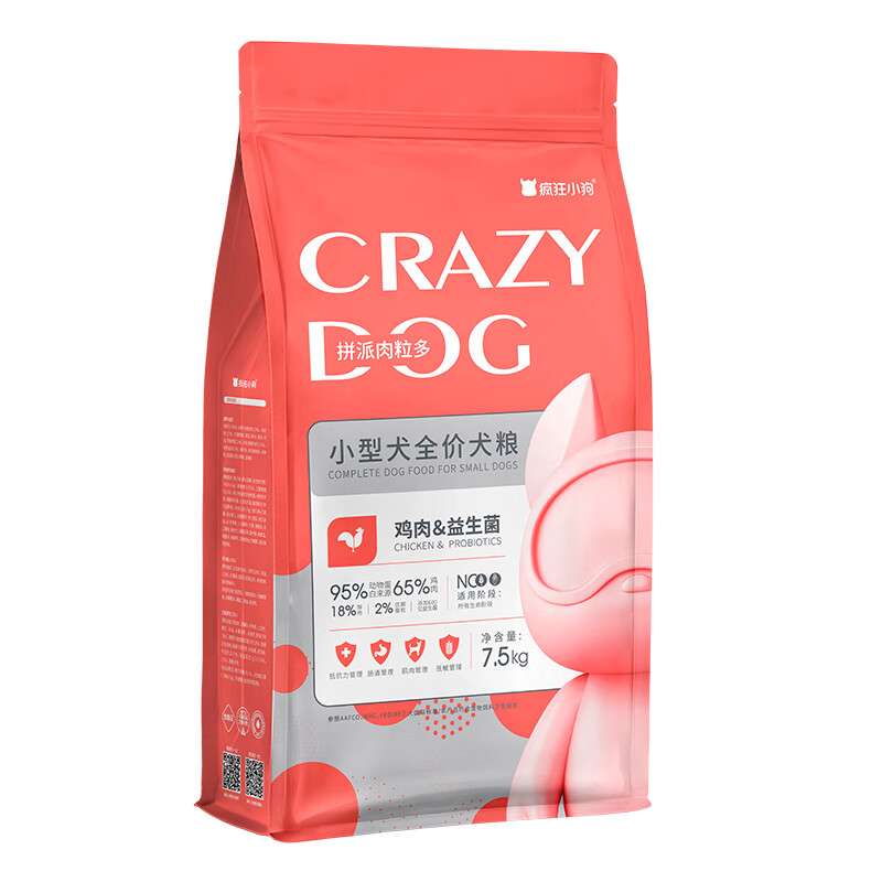 疯狂小狗 京东定制款成犬幼犬狗粮 贵宾泰迪柯基博美比熊小型犬粮 低敏鲜肉通用粮鸡肉&益生菌7.5kg