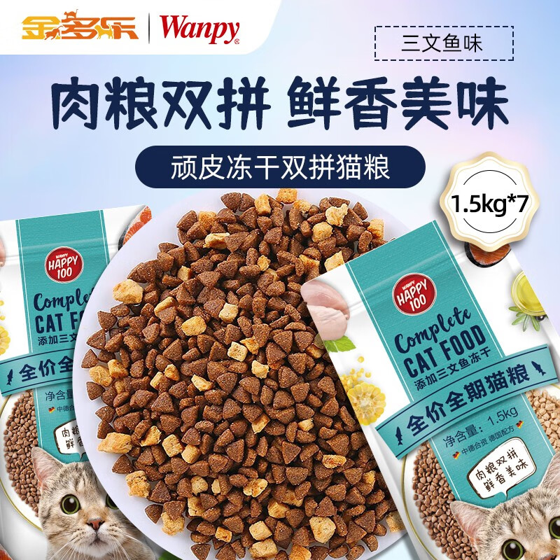 顽皮(Wanpy)Happy100全价全期三文鱼鸡肉冻干双拼冻干猫粮布偶蓝猫全价猫粮 顽皮三文鱼冻干双拼1.5KG*7
