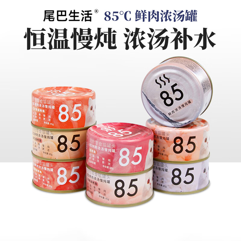 尾巴生活85度浓汤猫罐头成幼补水猫咪零食营养增肥主食罐宠物湿粮 【85度汤罐】口味混搭 24罐 【巨划算】整箱超