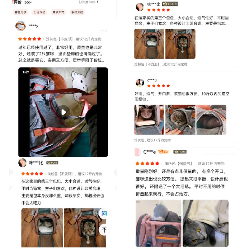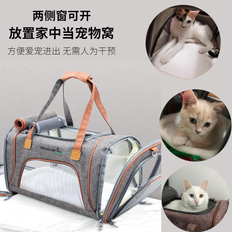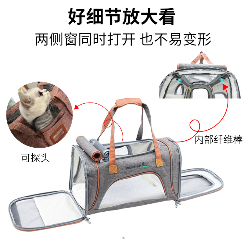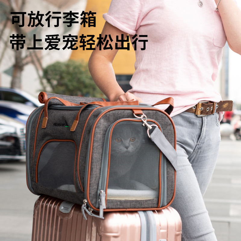ROIFR猫包外出手提透气斜跨猫书包宠物背包猫笼便携包宠物出行猫咪包旅行太空舱便携小型犬车载包 浅粉色【强透气】 建议12斤内宠物