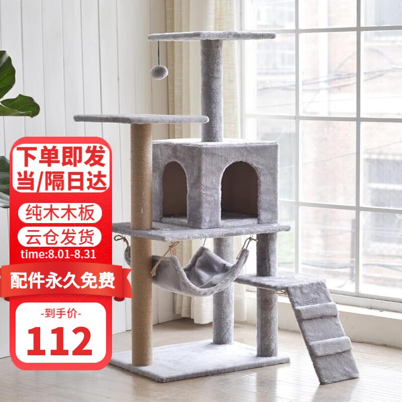 坏小宠【1.88m加粗加高柱】猫爬架大号剑麻猫窝猫咪玩具猫抓板猫抓柱毛绒布猫跳台猫架子猫玩具猫树 灰色 四层款