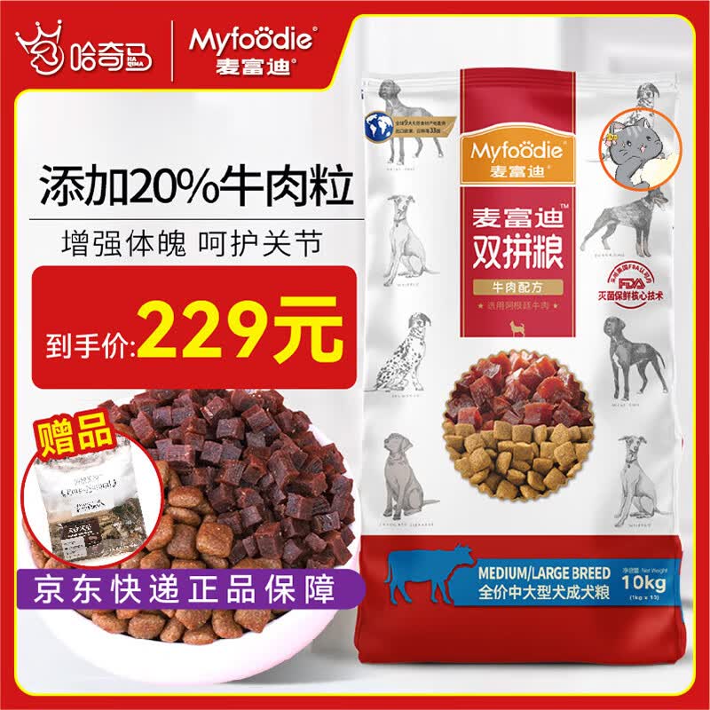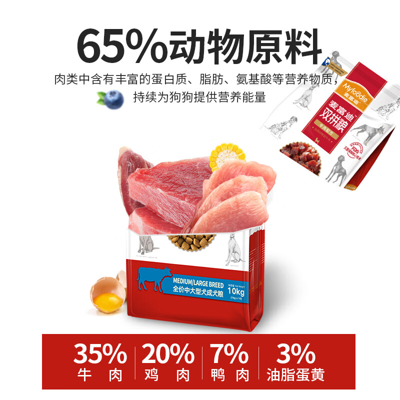 【狗主粮】麦富迪狗粮牛肉双拼天然粮主粮 添加牛肉粒 小型犬成犬粮 中大型犬10kg