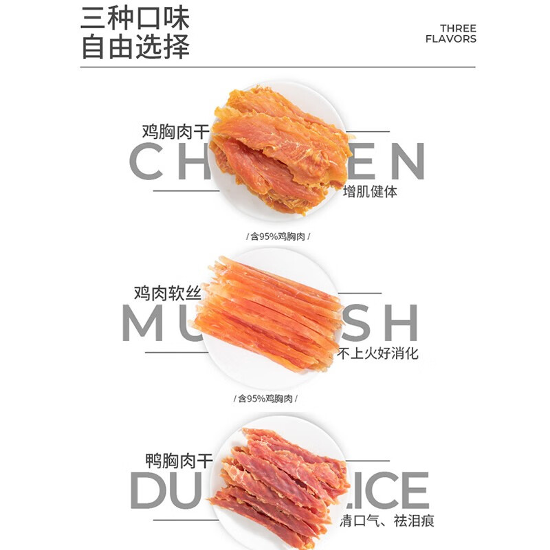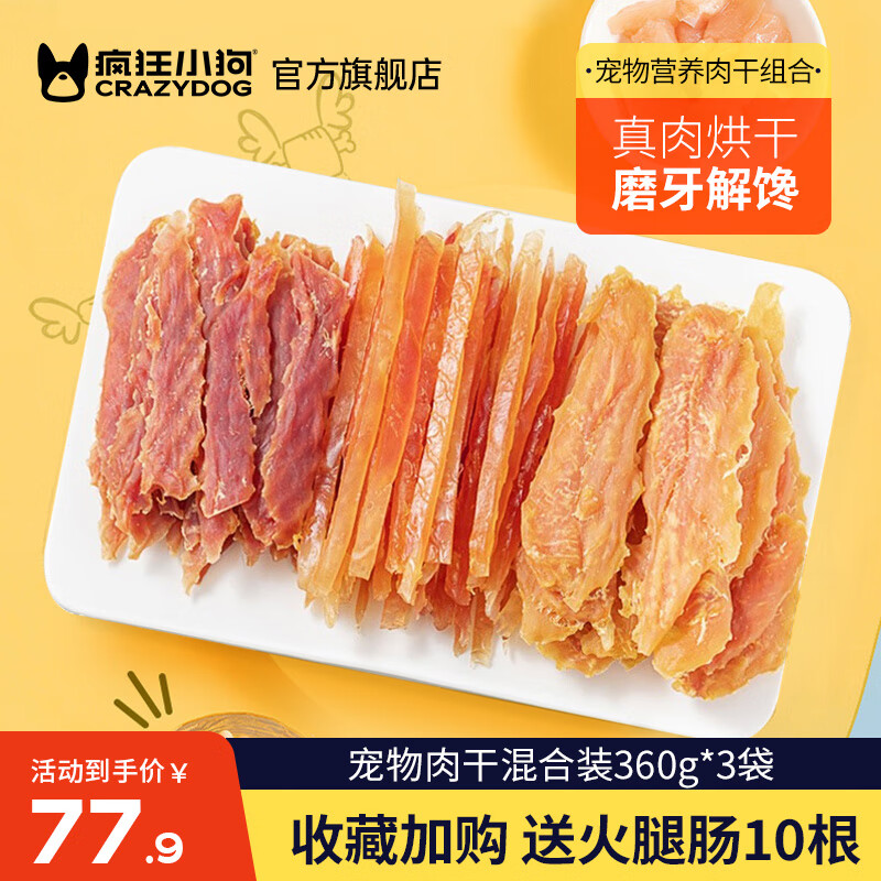 疯狂的小狗狗零食鸡鸭胸肉干比熊宠物泰迪幼犬训练奖励磨牙金毛中大型犬 肉干混合装360g*3【可享10根火腿肠】 6个月以上