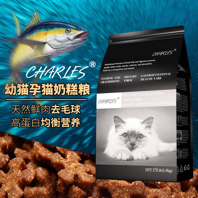 查尔斯 进口猫粮 幼猫奶糕三文鱼无谷鲜肉配方 怀孕及哺乳期母猫 猫粮6.8kg