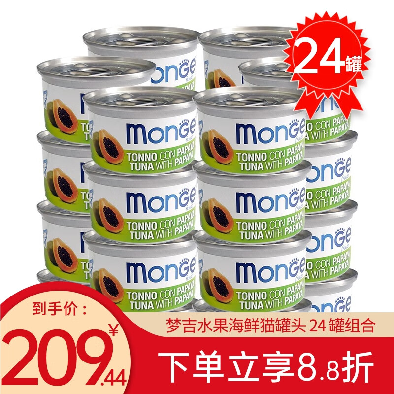 MONGE意大利梦猫罐头吉天然果冻水果金枪鱼成幼猫老年猫湿粮零食 24罐 水果系列 金枪鱼 木瓜