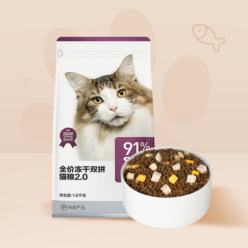 网易严选全价冻干双拼猫粮1.0鲜肉全猫粮成幼猫主粮1.8kg不吃包退