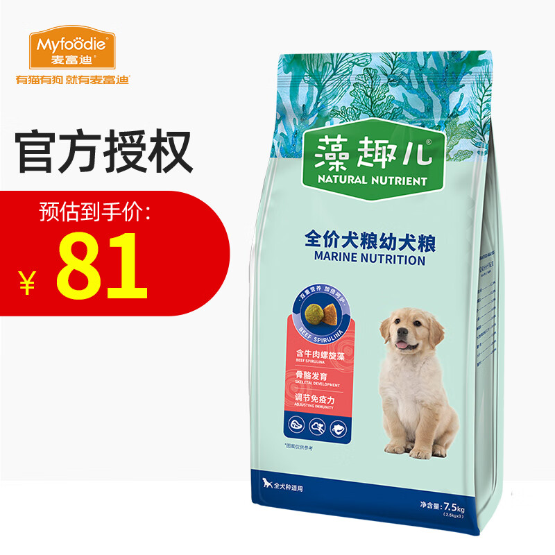 麦富迪 狗粮 藻趣儿全犬种通用犬粮 幼犬7.5kg