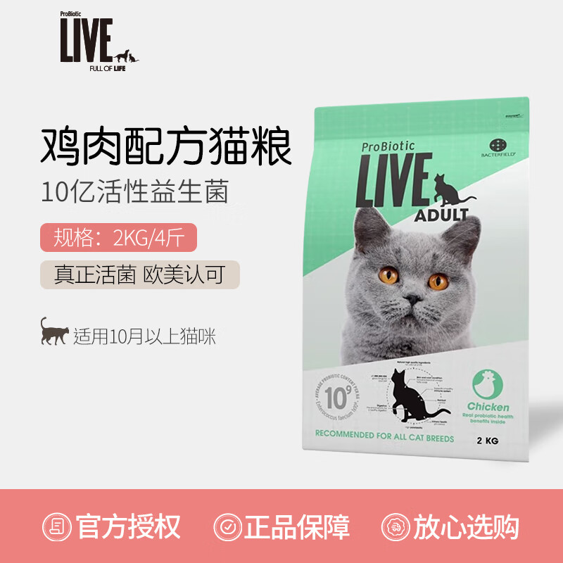 ProBiotic LIVE FULL OF LIFE猫粮 西班牙进口活菌粮成猫幼猫通用型 鸡肉成猫粮2kg(保质期到5月)