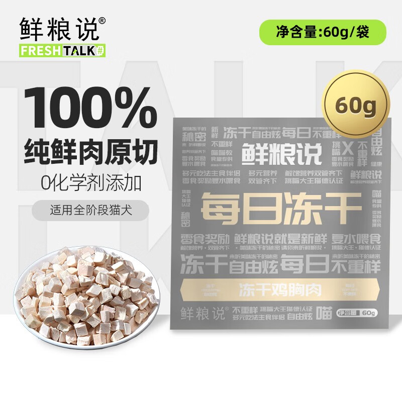 鲜粮说每日冻干猫粮全阶段幼成猫宠物零食增肥发腮营养冻干60g 60g 鸡肉粒