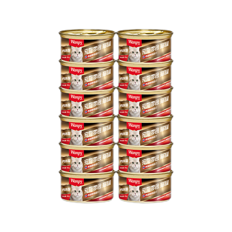 顽皮(Wanpy)猫零食 泰国进口猫罐头 成幼猫宠物猫咪零食罐头湿粮 肉冻型金枪鱼三文鱼85g*12