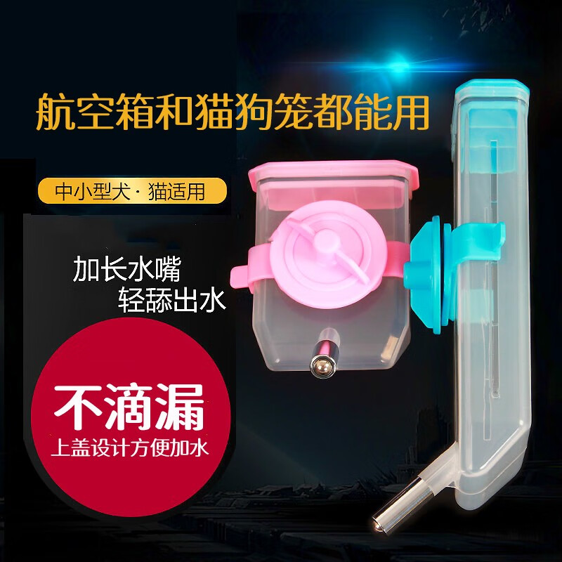 宠琪趣宠物航空箱水壶挂式饮水器挂笼子防漏猫狗喝水壶笼子饮水嘴 220ml-升级-粉色