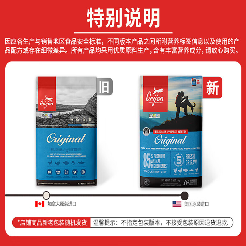 orijen渴望原味鸡肉犬粮成犬幼犬通用型金毛泰迪5.9kg美国进口 升级鸡肉5.9kg