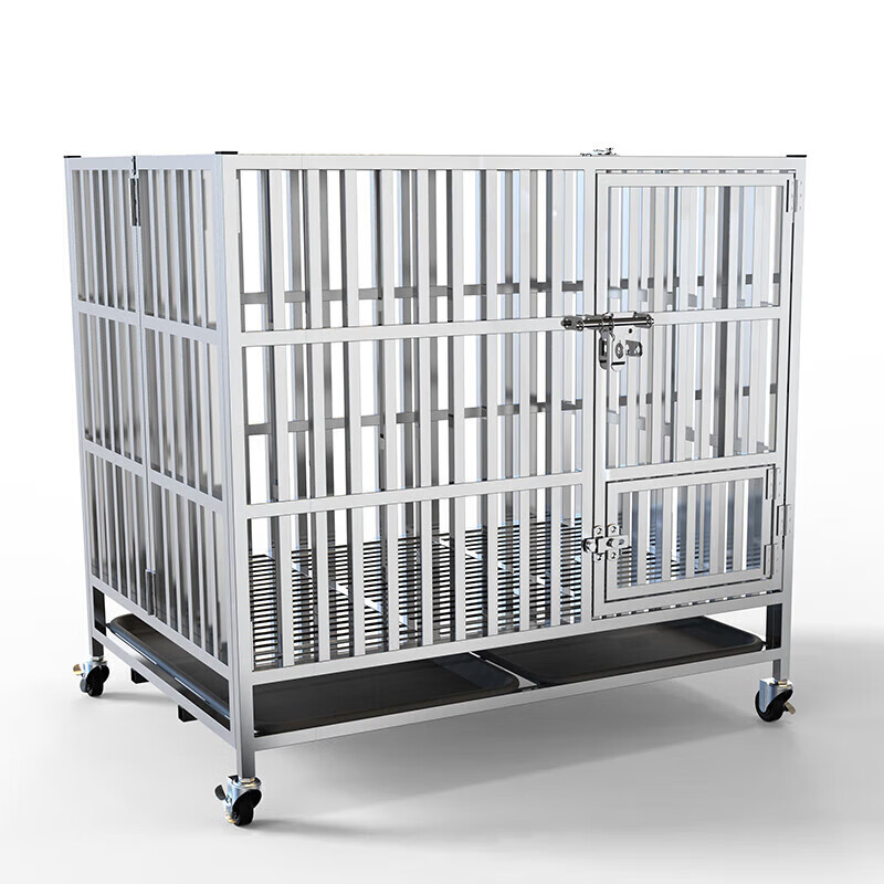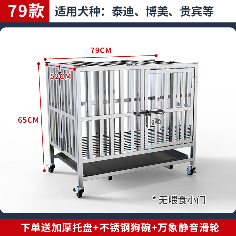 Q萌爬 QMENGPA不锈钢狗笼可折叠室内中型犬狗笼子小中大宠物笼金毛拉布拉多狗屋 79*52*65cm 【适用:泰迪 博美 加厚全方管