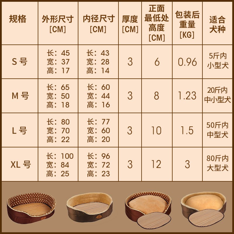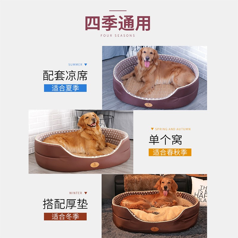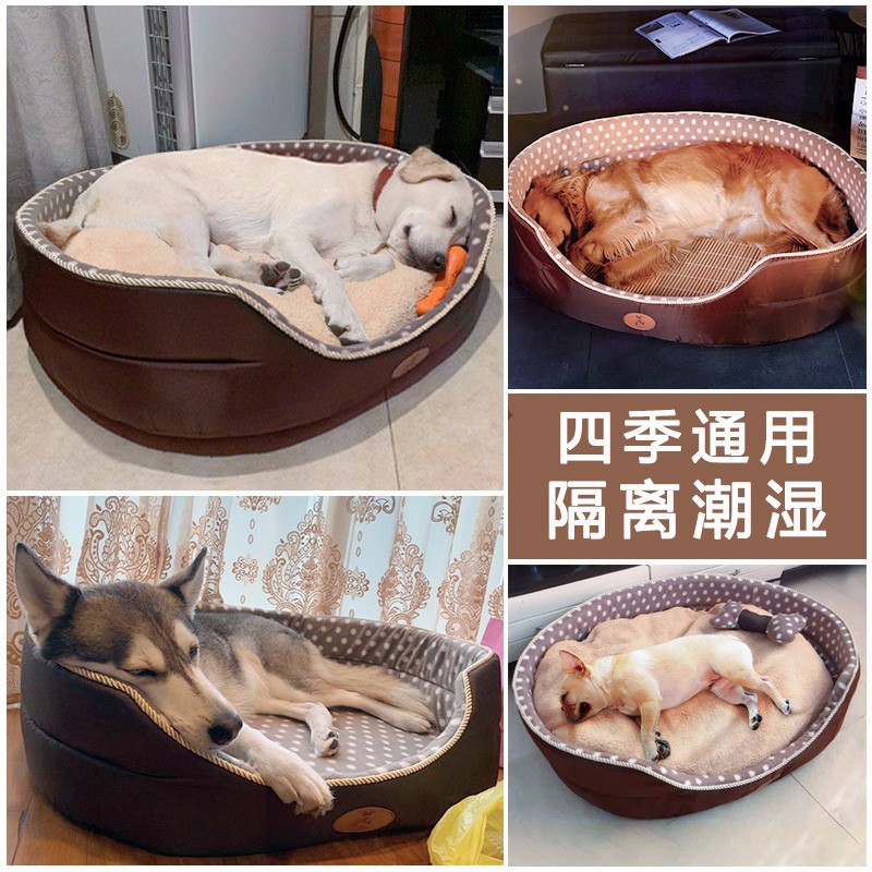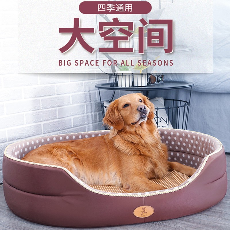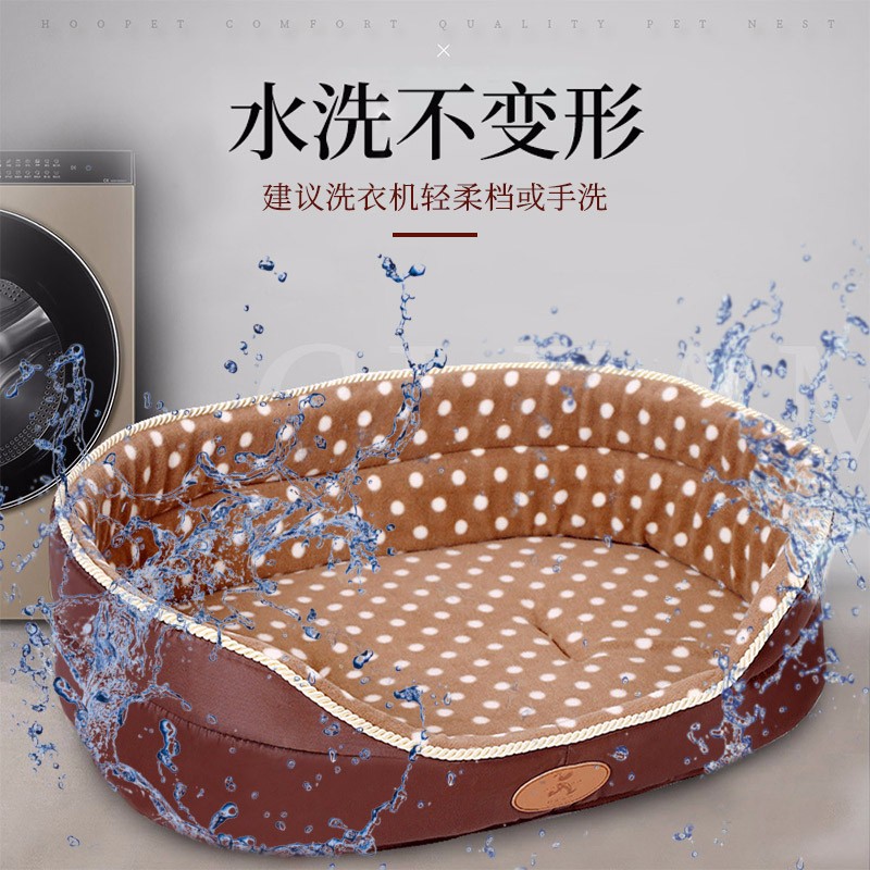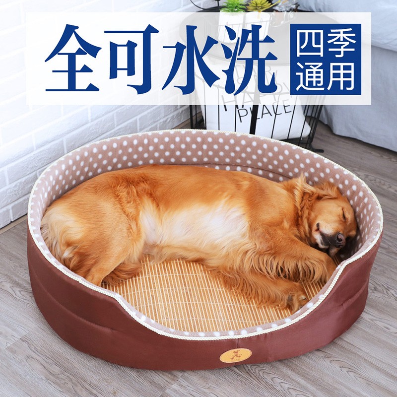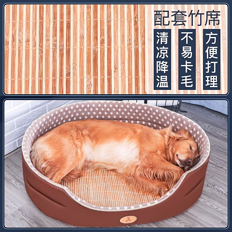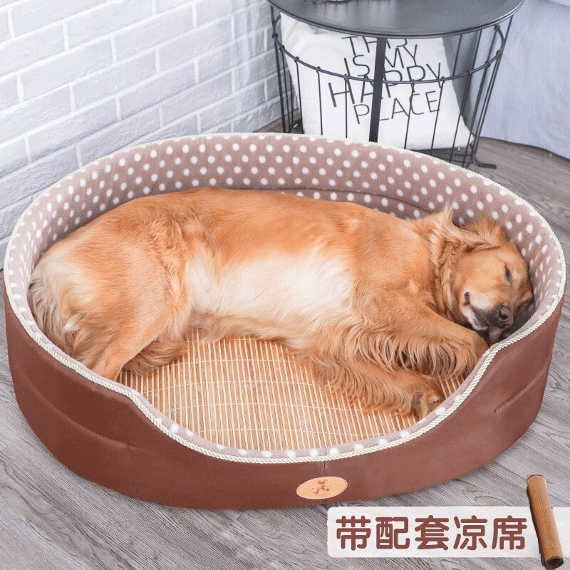 hoopet 狗窝四季通用狗床狗狗睡垫金毛边牧拉布拉多柯基法斗狗狗冬天大型犬可拆洗狗垫子耐咬冬季保暖 驼色波点窝 凉席 XL-80斤内狗狗