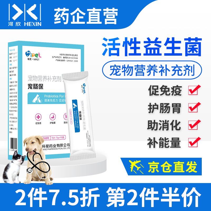 【7仓直发】益生菌宠物营养补充剂狗狗猫咪调理肠胃改善厌食补充能量高活性益生菌粉河欣宠肠保 5g*10袋 1盒装