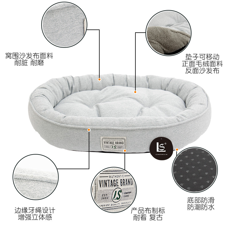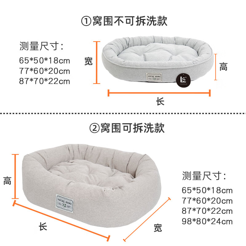 S夏季狗窝小型宠物狗窝猫窝垫子可拆洗中型大型四季通用猫狗垫可调 燕麦色 A号-66*48*10cm(20斤内使用)